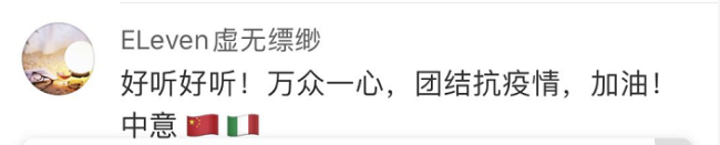 Citizen cinese: Che bella canzone! Dobbiamo unirci per lottare contro il covid-19. Forza Cina! Forza Italia!